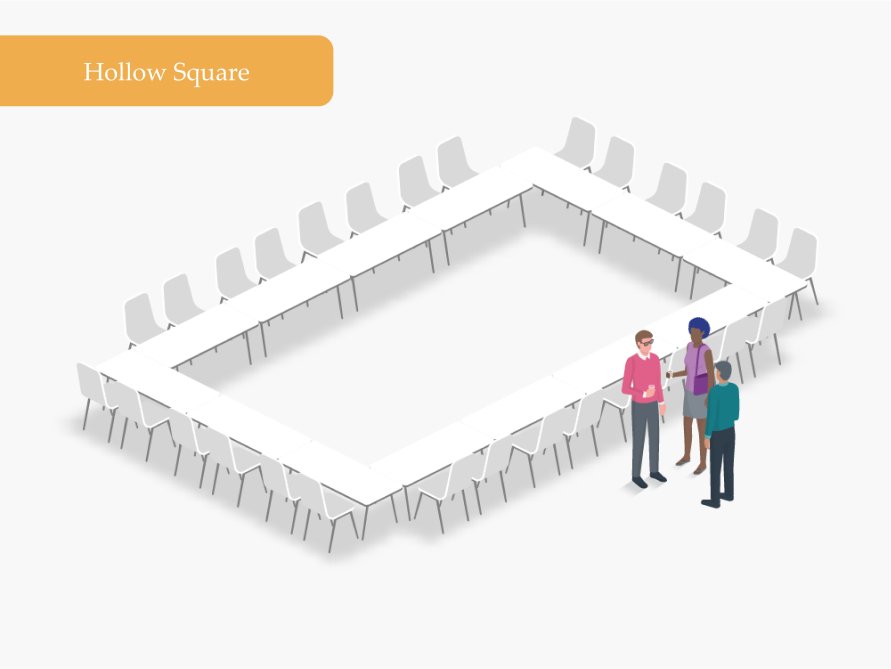 Hollow square seating allows everyone to face each other comfortably—great for collaborative work.